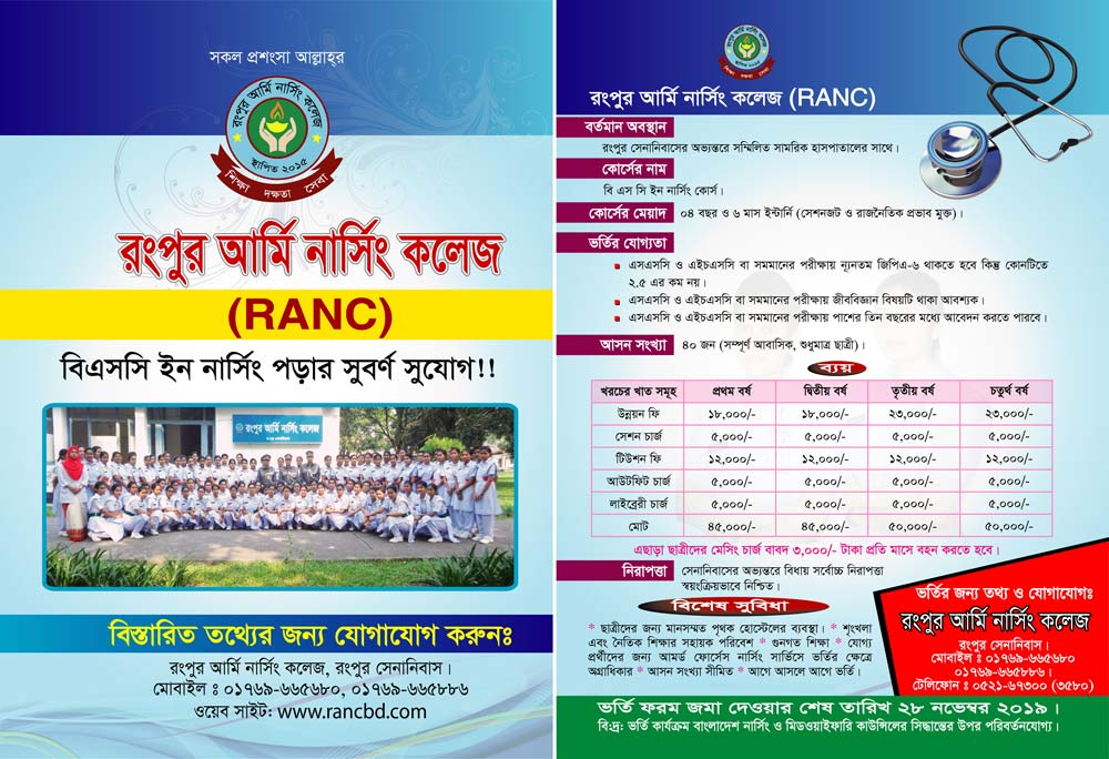 Rangpur Army Nursing College Admission 2019-2020 Leaflet